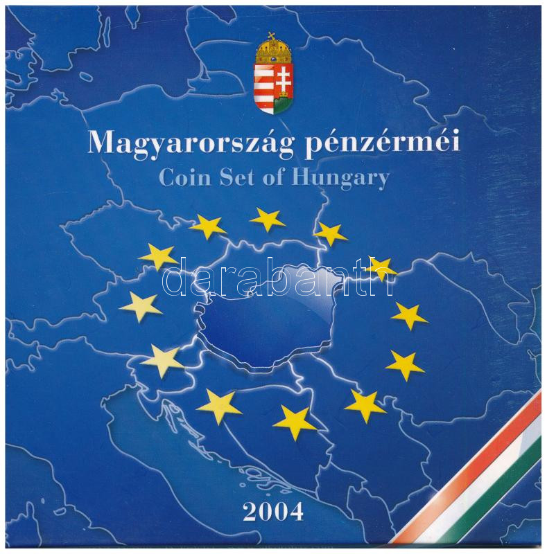 2004. 1Ft-100Ft (8xklf) forgalmi sor szettben, benne 2004. 50Ft ‘Magyarország az EU tagja’ T:PP kis patina, belső tokon a ragasztás részben elengedett Adamo FO38.1