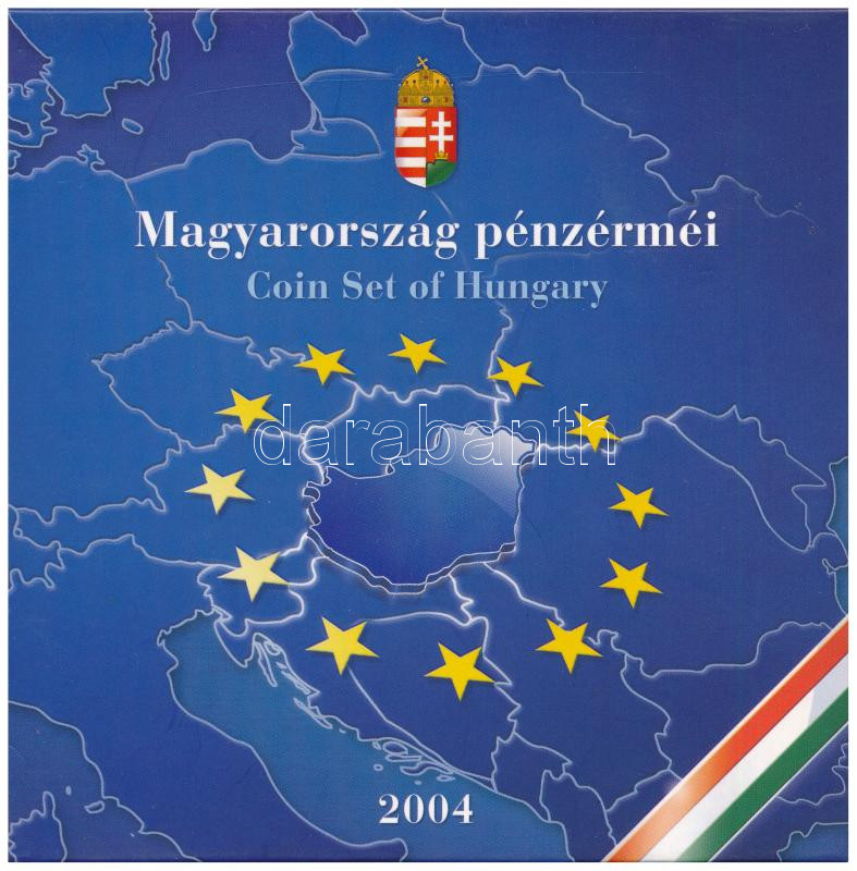 2004. 1Ft-100Ft (8xklf) forgalmi sor szettben, benne 2004. 50Ft ‘Magyarország az EU tagja’ T:PP kis patina, belső tokon a ragasztás részben elengedett Adamo FO38.1