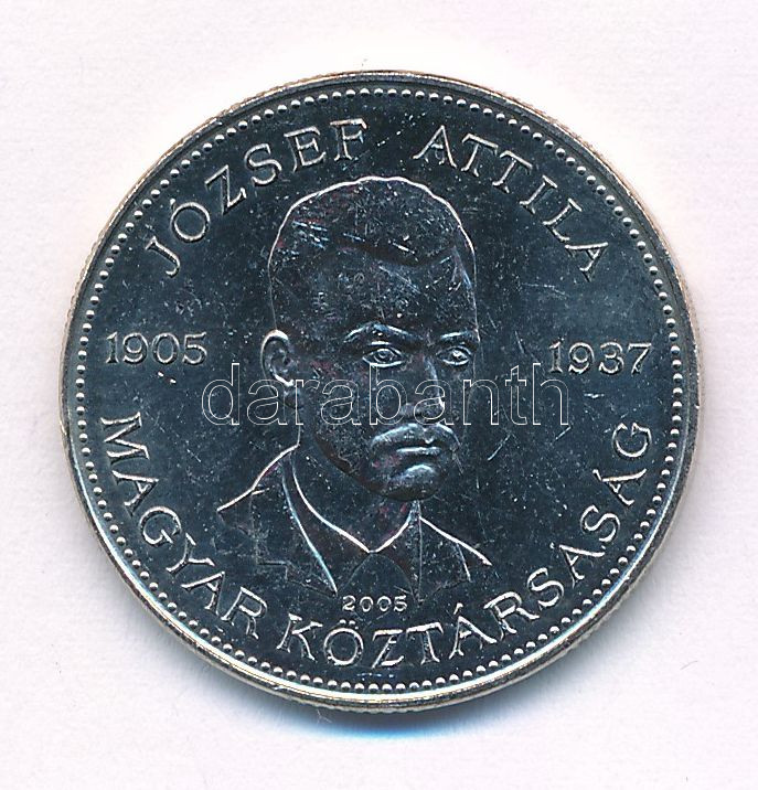 2005. 10Ft Cu-Ni ‘József Attila’ T:1-,2 Adamo FOEM4<a href="https://www.darabanth.com/hu/gyorsarveres/435/kategoriak~Numizmatika/Magyar-es-magyar-verdejelu-fem-es-ezustpenzek~1000008/2005-10Ft-Cu-Ni-Jozsef-Attila-T1-2-Adamo-FOEM4~II2819041/?utm_sour