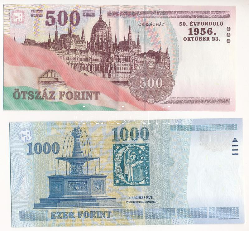2006. 500Ft ‘EB’ ‘A forradalom 50. évfordulója 1956. október 23.’ + 2006. 1000Ft ‘DE’ T:II- Adamo F54EE<a href="https://www.darabanth.com/hu/gyorsarveres/431/kategoriak~Numizmatika/Magyar-bankjegyek~1500007/2006-500Ft-EB-A-forradalom-50-evforduloja-