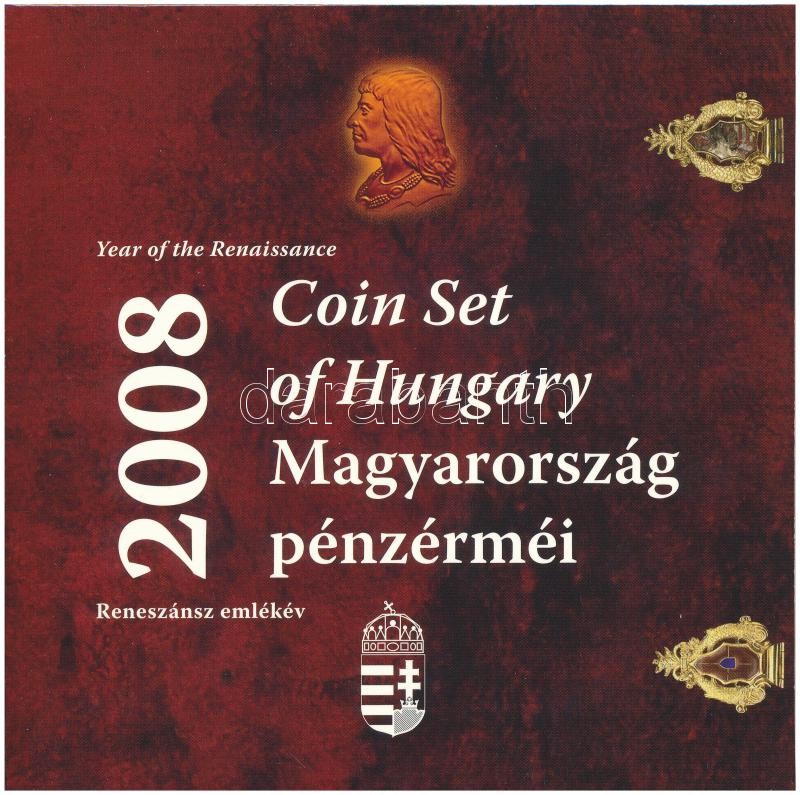 2008. 1Ft-100Ft (7xklf) + Mátyás denár Ag fantáziaverete (10g/0.999/27mm) ‘Reneszánsz emlékév’ forgalmi sor szettben T:PP patina Adamo FO42.4<a href="https://www.darabanth.com/hu/gyorsarveres/417/kategoriak~Numizmatika/Magyar-es-magyar-verdejelu-fe