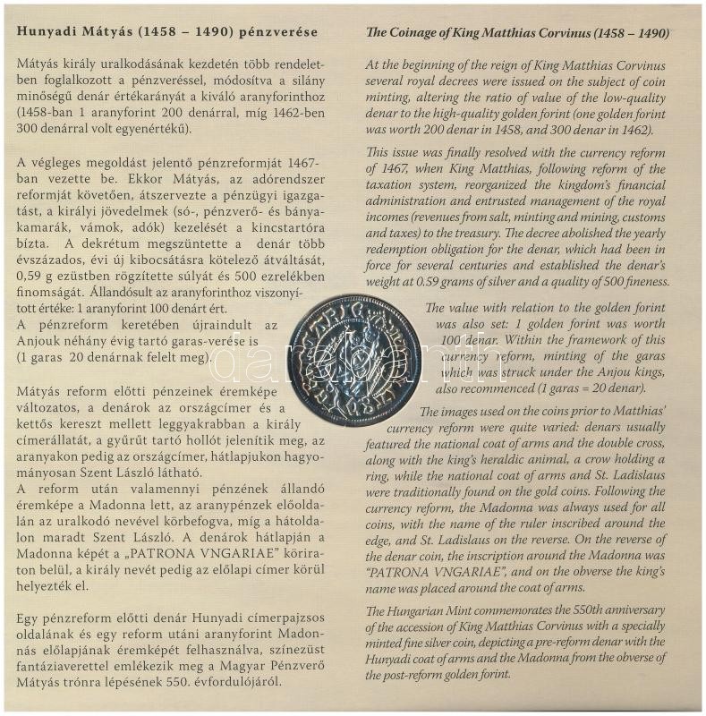 2008. 1Ft-100Ft (7xklf) + Mátyás denár Ag fantáziaverete (10g/0.999/27mm) ‘Reneszánsz emlékév’ forgalmi sor szettben T:PP patina Adamo FO42.4