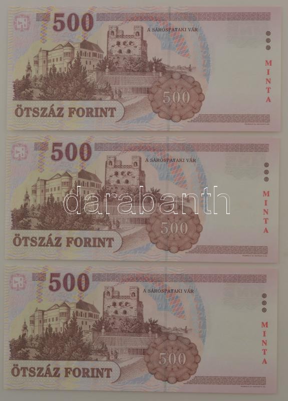 2008. 500Ft (3x) sorszámkövetők, piros „MINTA” felülbélyegzéssel „EC 0000292 – EC 0000294” T:UNC / Hungary 2008. 500 Forint (3x) conescutive serials with red „MINTA (SPECIMEN)” overprint „EC 0000292 – EC 0000294” C:UNC Adamo F54GM2/1