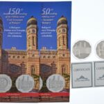 2009. 5000Ft Ag ‘150 éves a Dohány utcai Zsinagóga’ (2xklf) kapszulában, tanúsítvánnyal, 2db színes MNB tájékoztatóval T:BU,PP kis patina, az egyiken karc Adamo EM222<a href="https://www.darabanth.com/hu/gyorsarveres/423/kategoriak~Numizmatika/Magya