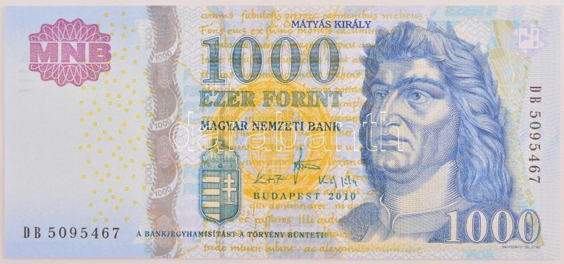 2010. 1000Ft ‘DB 5095467’ T:I / Hungary 2010. 1000 Forint ‘DB 5095467’ C:UNC<a href="https://www.darabanth.com/hu/nagyaukcio/38/kategoriak~Numizmatika/Magyar-es-kulfoldi-bankjegyek~15627/2010-1000Ft-DB-5095467-TI-Hungary-2010-1000-Forint-DB-5095467-