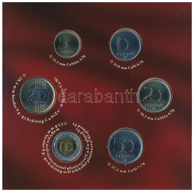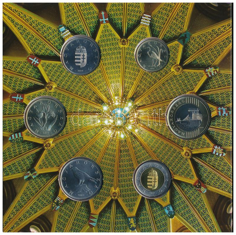 2012. 5Ft-200Ft (6xklf) elsőnapi veret, ‘Magyarország Alaptörvénye’ forgalmi sor szettben. Belső tokon a ragasztás elengedett T:1 Adamo FO46