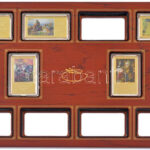 2014-2017. ‘A magyar festészet remekművei’ aranyozott, multicolor Cu emlékérmek (7xklf) eredeti, fa éremtartó konzolban, 5db tanúsítvánnyal (érem:60x35mm/db, keret:230x340mm) T:PP<a href="https://www.darabanth.com/hu/gyorsarveres/433/kategoriak~Numi