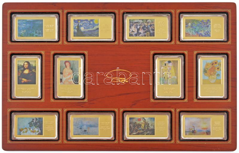 2016-2018. ‘A világ leghíresebb festményei’ aranyozott, multicolor Cu emlékérmek (12xklf) eredeti, fa éremtartó konzolban, a hozzájuk tartozó tanúsítványokkal (érem:60x35mm/db, keret:230x340mm) T:PP<a href="https://www.darabanth.com/hu/gyorsarveres/