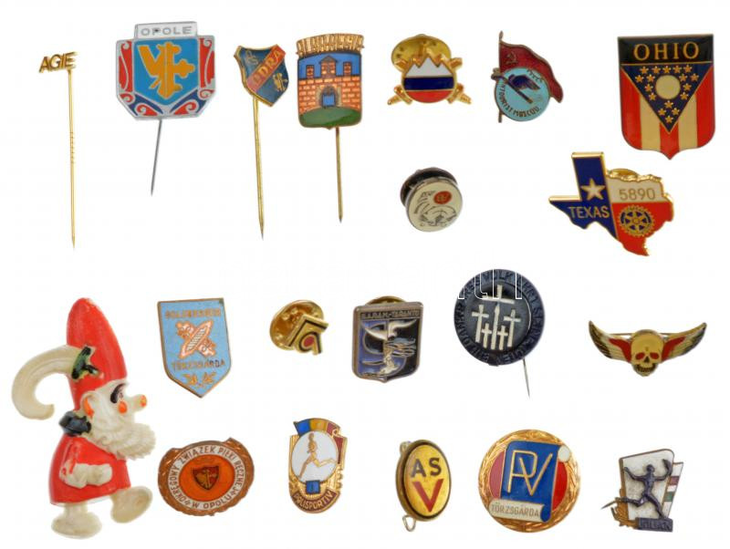 20db-os, magyar és külföldi jelvényből álló tétel, több zománcozott darabbal T:1-2-