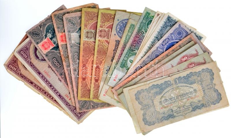 33 db-os pengő bankjegy tétel, közte 1932. 50P (7x) + 1944. 20P ‘A Vörös Hadsereg Parancsnoksága’ T:III,III- közte szakadás, anyaghiány, folt, firka<a href="https://www.darabanth.com/hu/gyorsarveres/415/kategoriak~Numizmatika/Magyar-bankjegyek~20000