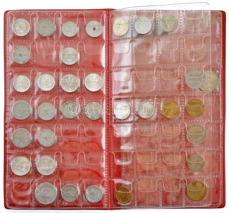 34db vegyes magyar és külföldi fémpénz fémpénz piros műbőr érmeberakó albumba rendezve T:1–3<a href="https://www.darabanth.com/hu/gyorsarveres/431/kategoriak~Numizmatika/Vegyes-papir-es-fempenz-tetelek~1500022/34db-vegyes-magyar-es-kulfoldi-fempenz