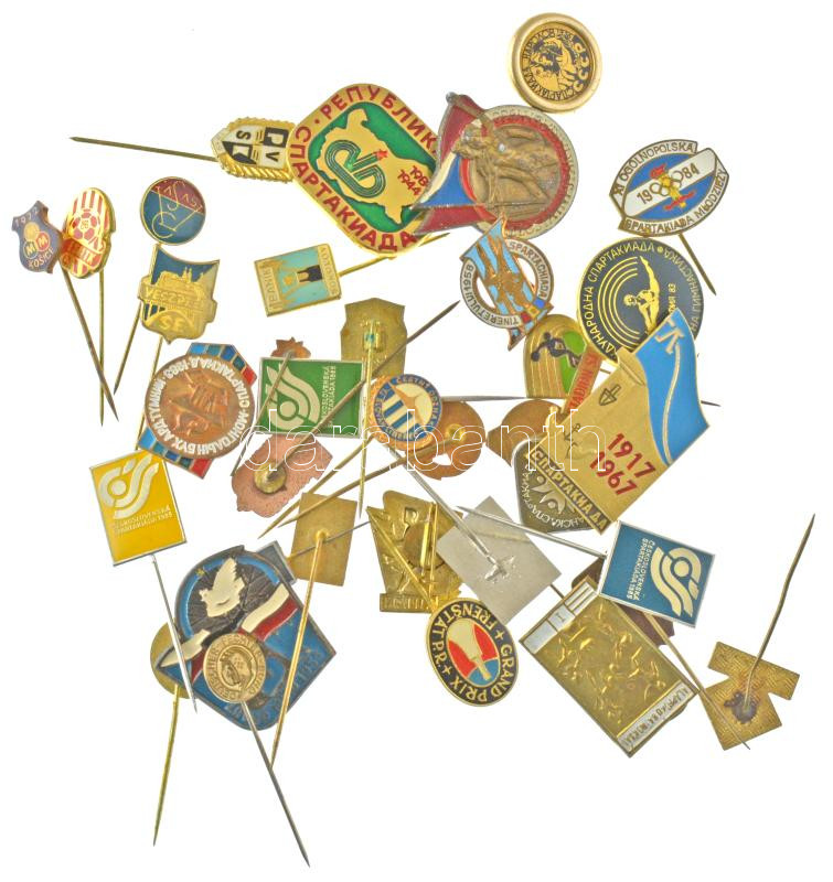36db-os magyar és külföldi sportjelvény-tétel, közte labdarúgó és ‘Spartakiád’ jelvények T:vegyes<a href="https://www.darabanth.com/hu/gyorsarveres/440/kategoriak~Numizmatika/Sportdijak-es-sport-emlekermek~1500013/36db-os-magyar-es-kulfoldi-sportjel
