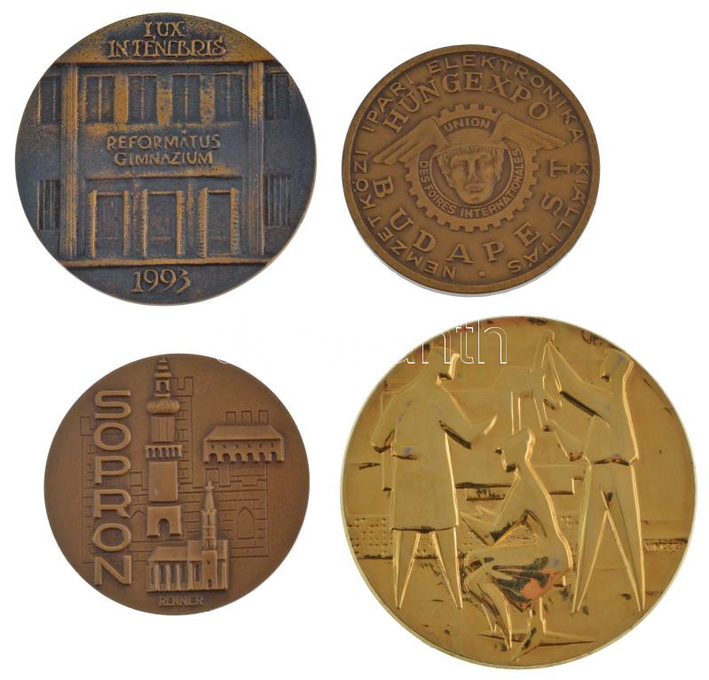 4 darabos magyar emlékérem tétel, közte ‘Református Gimnázium 1993’, ‘Hugexpo 1974’, ‘Sopron’, ‘Mesterségek’ (60-80mm) T:1-,2