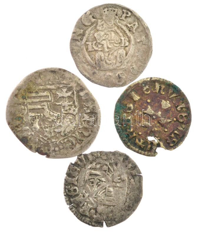 4db középkori Ag denár gyenge tartásban, közte II. Rudolf, I. Mátyás T:3 ki.<a href="https://www.darabanth.com/hu/gyorsarveres/434/kategoriak~Numizmatika/Magyar-es-magyar-verdejelu-fem-es-ezustpenzek~1500008/4db-kozepkori-Ag-denar-gyenge-tartasban-k