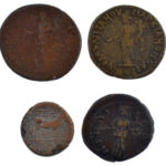 4db rossz állapotú római, görög bronzpénz, közte Domitianus T:3 ütésnyom 4pcs of Roman, Greek bronze coins, with Domitian C:F ding<a href="https://www.darabanth.com/hu/gyorsarveres/434/kategoriak~Numizmatika/Romai-Birodalom~1500017/4db-rossz-allapot