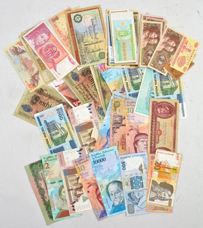 54db-os vegyes, magyar és külföldi bankjegytétel, közte Német Birodalom, Franciaország, Oroszország, Ukrajna, Venezuela, Kína, Fehéroroszország, stb. T:I-IV 54pcs mixed, Hungarian and foreign banknote lot, within German Empire, France, Russia, Ukraine, Ve