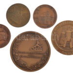 5db-os, főleg magyar bronz emlékérem-tétel, közte: Lantos Györgyi: 1986. ‘Tornyai János halálának 50. évfordulójára / Hódmezővásárhely Városi Tanács MÉE’ bronz emlékérem (42,5mm) + Tóth Júlia (1951-) (?) 1985. ‘425 éves a Földes Ferenc Gimnázium, Miskolc