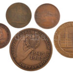 5db-os, főleg magyar bronz emlékérem-tétel, közte: Lantos Györgyi: 1986. ‘Tornyai János halálának 50. évfordulójára / Hódmezővásárhely Városi Tanács MÉE’ bronz emlékérem (42,5mm) + Tóth Júlia (1951-) (?) 1985. ‘425 éves a Földes Ferenc Gimnázium, Miskolc