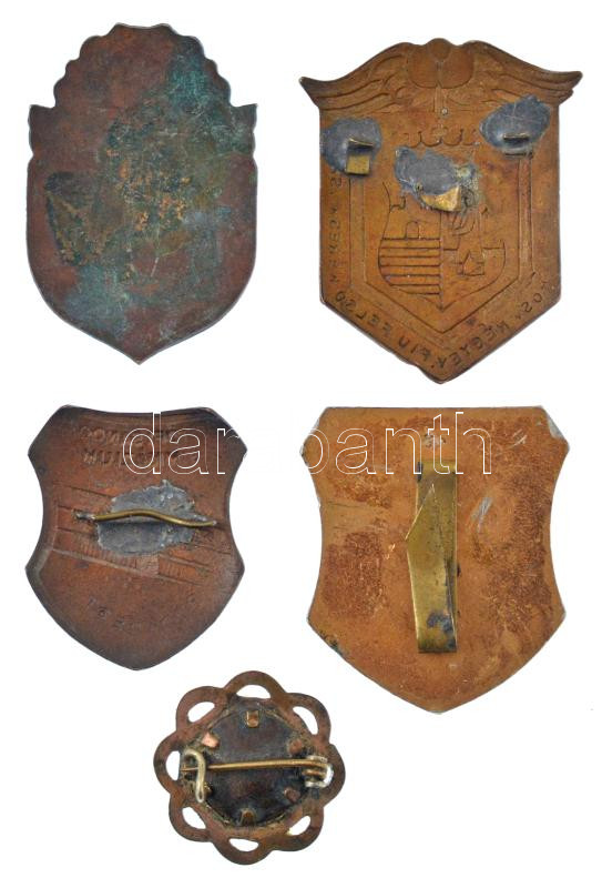 5db-os, nagyrészt iskolajelvény tétel, közte DN ‘Petőfi Sándor Gimnázium Budapest’ zománcozott fém jelvény (~35x28mm) T:2-,3 zománchiba, kettőről letört a tű<a href="https://www.darabanth.com/hu/gyorsarveres/435/kategoriak~Numizmatika/Falerisztika-K