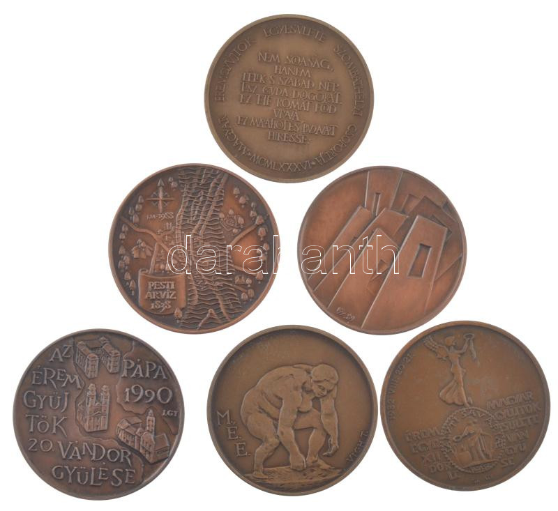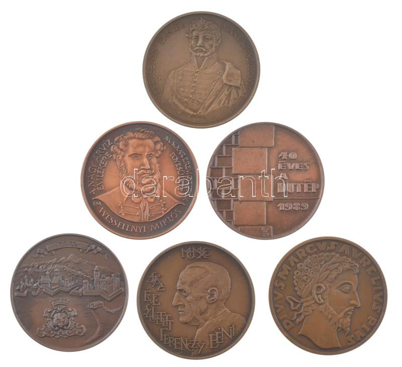 6 darabos bronz emlékérem tétel, közte ‘Berzsenyi Dániel’, ’40 éves a DUTÉP’, ‘Ferenczy Béni’, ‘Az éremgyűjtők 20. vándorgyűlése’ (42mm) T:1-