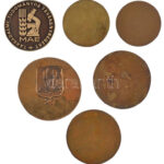 6 darabos szocialista bronz emlékérem tétel, közte ‘A vállalat kiváló brigádja’, ‘Szocialista faluért’, ‘Az úttörőmozgalomért’, ‘A munkában töltött évekért’ (70-100mm) T:1-,2