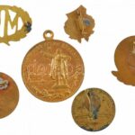 6db klf kitűző, jelvény tétel, közte Madarassy Walter (1909-1994) 1938. ‘XXXIV. Nemzetközi Eucharisztikus Kongresszus Budapest’ bronz kitűző + ‘Vöröskereszt – Érdemes Munkáért’ zománcozott fém jelvény + ~1970-1980. ‘Vízügyi