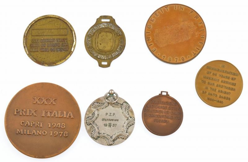 7db klf külföldi emlékérem, közte Amerikai Egyesült Államok, Olaszország T:1-,2 7pcs of commemorative medallions from diff countrie, with USA, Italy C:AU,XF<a href="https://www.darabanth.com/hu/gyorsarveres/424/kategoriak~Numizmatika/Kulfoldi-emlekv