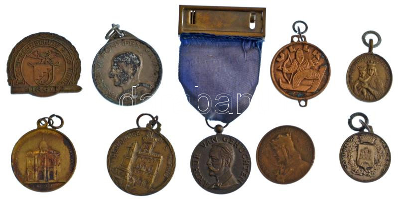 9db-os, főleg külföldi emlékéremből és kegyéremből álló tétel, közte Belgium 1957. ‘Arthur Van Gehuchten / Babinski, Sherrington, Horsley’ emlékérem mellszalagon a belga neurológia orvosi jubileumának 100. évfordulójára T:vegyes<a href="https://www.