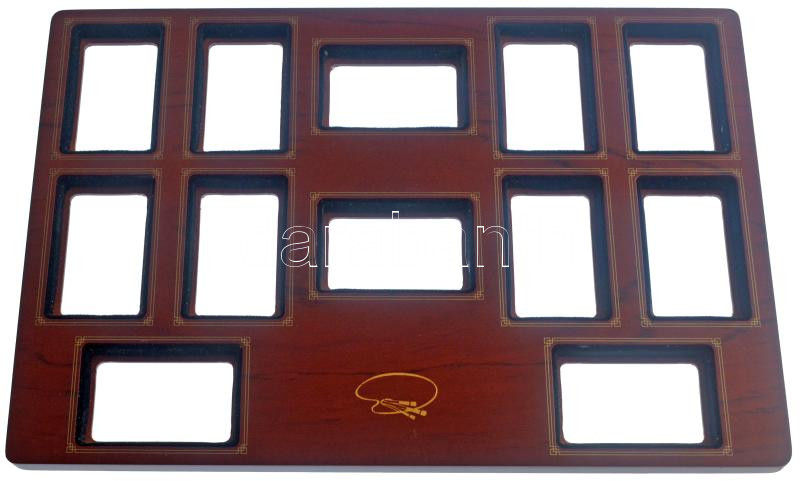 ‘A világ leghíresebb festményei’ fa éremtartó konzol, 12db férőhellyel. Szép állapotban.