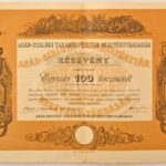 Abád-Szalók 1911. „Abád-Szalóki Takarékpénztár Részvénytársaság” részvénye 100K-ról, szárazpecséttel, 2db szelvénnyel, bélyegzéssel T:F / Hungary / Abád-Szalók 1911. „Savings Bank Share Company of Abád-Szalók” share about 100 Korona, with embossed stamp,