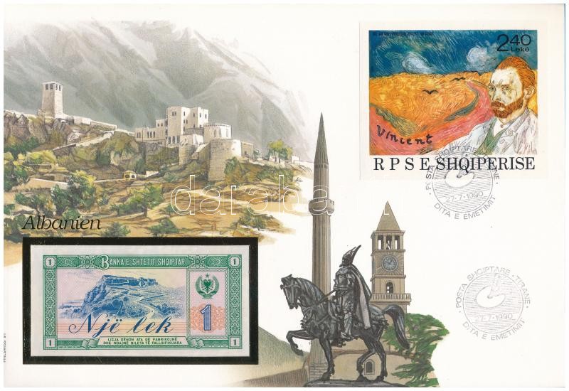 Albánia 1976. 1L felbélyegzett borítékban, bélyegzéssel T:I Albania 1976. 1 Lek in envelope with stamp and cancellation C:UNC<a href="https://www.darabanth.com/hu/gyorsarveres/414/kategoriak~Numizmatika/Ermes-es-bankjegyes-boritekok~2000006/Albania-