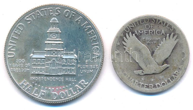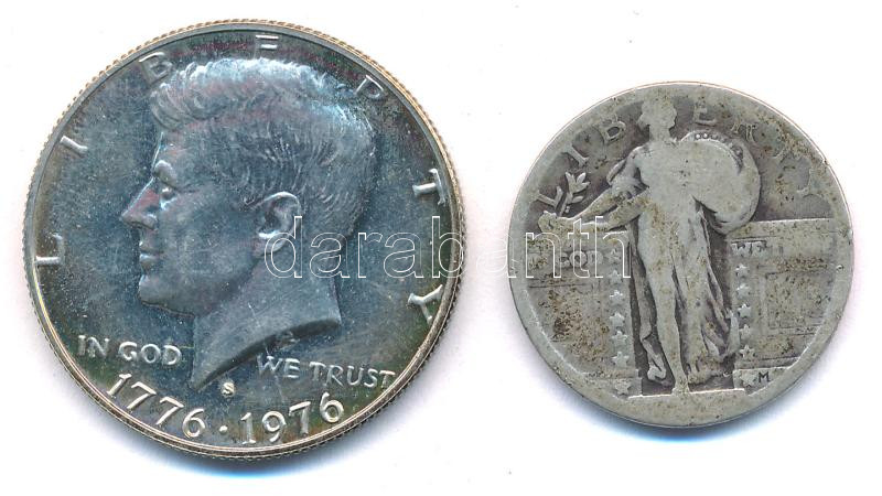 Amerikai Egyesült Államok 1917-1930. 1/4D Ag ‘Liberty’ + 1976. 1/2D Ag ‘Kennedy’ T:1-,3 United States 1917-1930. 1/4 Dollar Ag ‘Liberty’ + 1976. 1/2 Dollar Ag ‘Kennedy’ C:AU-F
