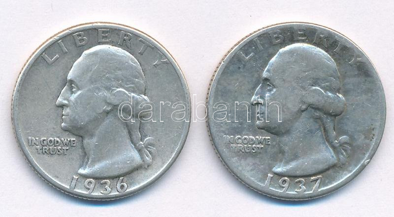 Amerikai Egyesült Államok 1936. 25c Ag + 1937. 25c Ag T:2-3 USA 1936. 25 Cent Ag + 1937. 25 Cent Ag C:XF-F<a href="https://www.darabanth.com/hu/gyorsarveres/435/kategoriak~Numizmatika/Kulfoldi-fem-es-ezustpenzek~1500031/Amerikai-Egyesult-Allamok-19