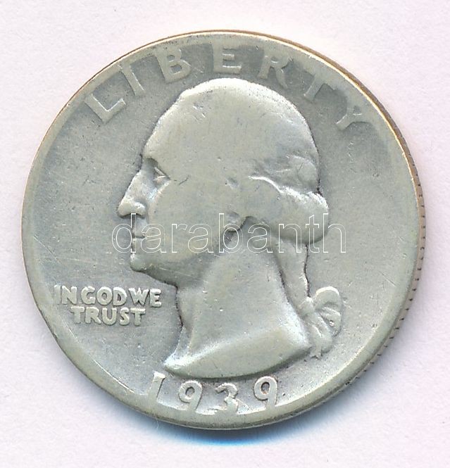 Amerikai Egyesült Államok 1939. 25c Ag T:2- patina, kis ph USA 1939. 25 Cents Ag C:VF patina, small edge error Krause KM#164<a href="https://www.darabanth.com/hu/gyorsarveres/416/kategoriak~Numizmatika/Kulfoldi-fem-es-ezustpenzek~1500013/Amerikai-Eg