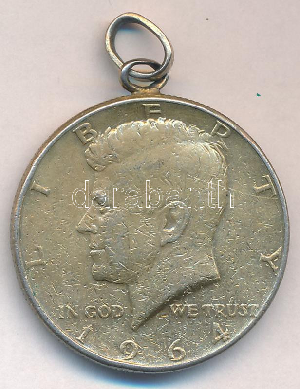 Amerikai Egyesült Államok 1964. 1/2$ Ag ‘Kennedy’ aranyozba, füllel, függesztőkarikával T:2- patina USA 1964. 1/2 Dollar Ag ‘Kennedy’ gilt, with ear and ring C:VF patina Krause KM#202<a href="https://www.darabanth.com/hu/gyorsarveres/432/kategoriak~