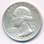 Amerikai Egyesült Államok 1964. 25c Ag T:2 karc USA 1964. 25 Cents Ag C:XF scratch Krause KM#164<a href="https://www.darabanth.com/hu/gyorsarveres/416/kategoriak~Numizmatika/Kulfoldi-fem-es-ezustpenzek~1500013/Amerikai-Egyesult-Allamok-1964-25c-Ag-T