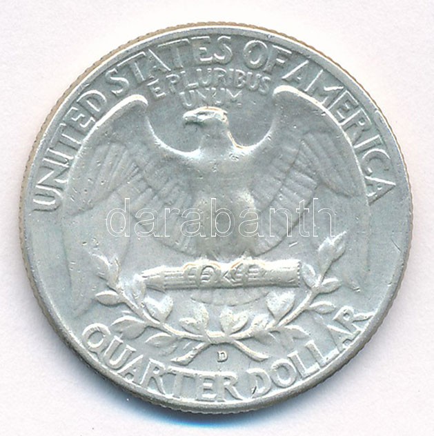 Amerikai Egyesült Államok 1964D 25c Ag T:2 patina USA 1964D 25 Cents Ag C:XF patina Krause KM#164<a href="https://www.darabanth.com/hu/gyorsarveres/424/kategoriak~Numizmatika/Kulfoldi-fem-es-ezustpenzek~1500017/Amerikai-Egyesult-Allamok-1964D-25c-Ag