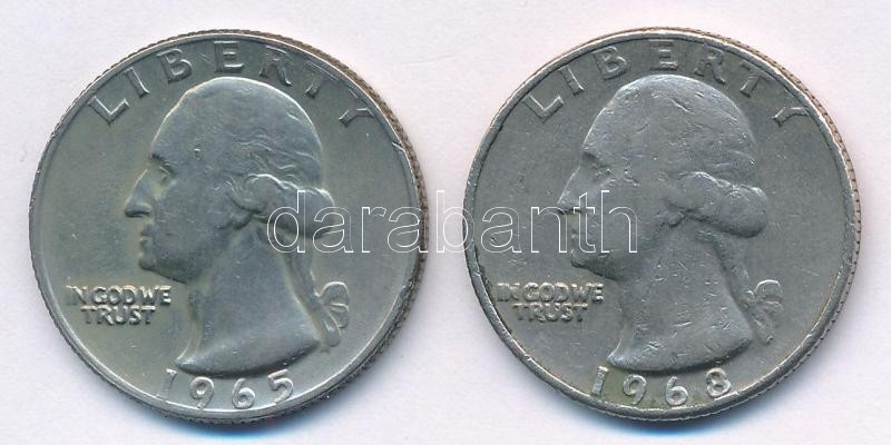 Amerikai Egyesült Államok 1965-1968. 1/4$ Cu-Ni ‘Washington’ (2x) T:2,2- ph. USA 1965-1968. 1/4 Dollar Cu-Ni ‘Washington’ (2x) C:XF,VF edge error<a href="https://www.darabanth.com/hu/gyorsarveres/409/kategoriak~Numizmatika/Kulfoldi-fem-es-ezustpenze
