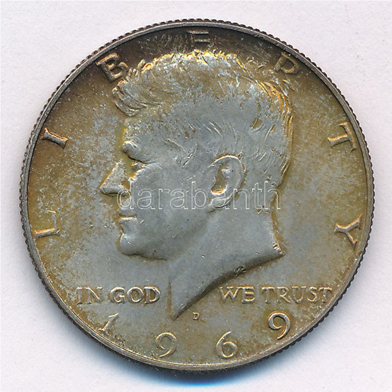 Amerikai Egyesült Államok 1969D 1/2$ Ag ‘Kennedy’ T:2 patina USA 1969D 1/2 Dollar Ag ‘Kennedy’ C:XF patina Krause KM#202a<a href="https://www.darabanth.com/hu/gyorsarveres/417/kategoriak~Numizmatika/Kulfoldi-fem-es-ezustpenzek~2000015/Amerikai-Egy