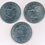 Amerikai Egyesült Államok 1972D-1976 1$ Cu-Ni ‘Eisenhower’ (3xklf) T:1-ragasztónyom United States 1972D-1976 1 Dollar Cu-Ni ‘Eisenhower’ (3xdiff) C:AU glue mark