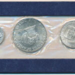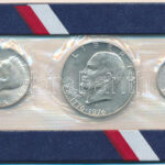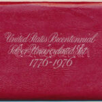 Amerikai Egyesült Államok 1976S 1/4$ Ag ‘Washington’ + 1/2$ Ag ‘Kennedy’ + 1$ Ag ‘Eisenhower’ ‘Bicentennial’ szettben, műanyag vákuum csomagolásban és karton keretben, angol nyelvű tájékoztatóval, eredeti piros műbőr borítékban