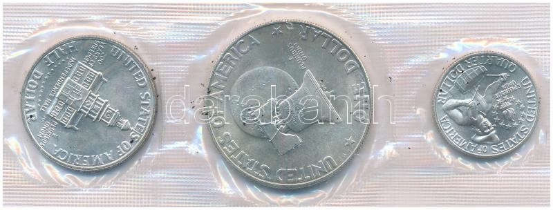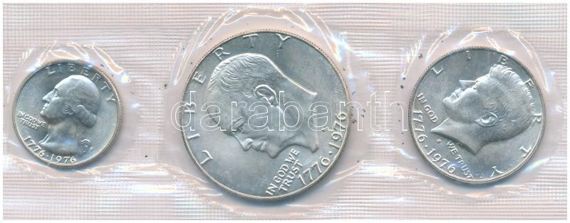 Amerikai Egyesült Államok 1976S 1/4$ Ag ‘Washington’ + 1/2$ Ag ‘Kennedy’ + 1$ Ag ‘Eisenhower’ ‘Bicentennial’ szettben, műanyag vákuum csomagolásban T:1,1- kis patina, kis ü. USA 1976S 1/4 Dollar ‘Washington’ + 1/2 Dollar Ag ‘Kennedy’ + 1 Dollar ‘Eisenhowe