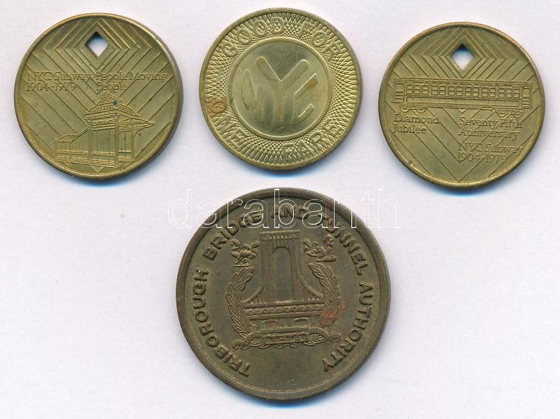 Amerikai Egyesült Államok ~1980. 4db-os közlekedési bárca tétel T:2,2- USA ~1980. 4pcs public transport tokens C:XF,VF<a href="https://www.darabanth.com/hu/gyorsarveres/413/kategoriak~Numizmatika/Papir-es-fem-szuksegpenzek~1500006/Amerikai-Egyesult-
