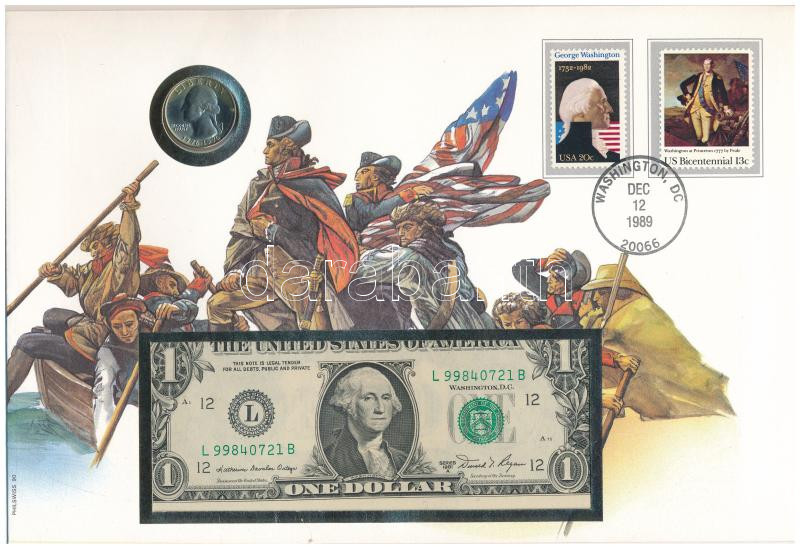 Amerikai Egyesült Államok 1981. 1$ bankjegy + 1976 25c Cu- Ni érme felbélyegzett borítékban, bélyegzéssel T:I USA 1981. 1 Dollar 3 1976 25 cent Cu- Ni coin in envelope with stamp and cancellation C:UNC<a href="https://www.darabanth.com/hu/gyorsarver