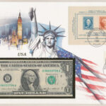 Amerikai Egyesült Államok 1985. 1$ felbélyegzett borítékban, bélyegzéssel T:I USA 1985. 1 Dollar in envelope with stamp and cancellation C:UNC<a href="https://www.darabanth.com/hu/gyorsarveres/431/kategoriak~Numizmatika/Ermes-es-bankjegyes-boritekok