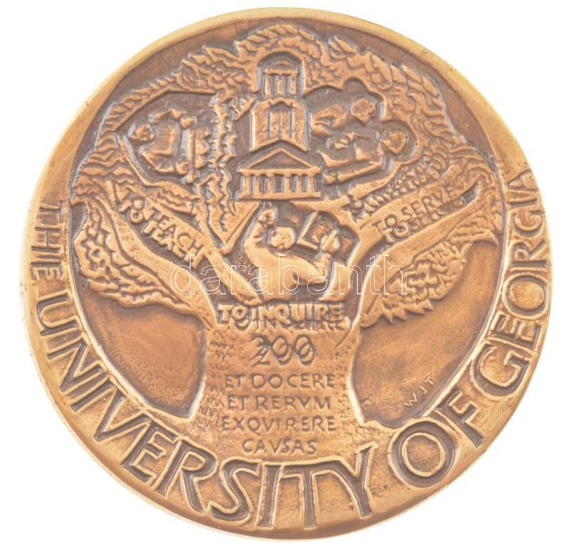 Amerikai Egyesült Államok 1985. ‘Georgia-i Egyetem bicentenárium’ öntött bronz emlékérem tokban. Szign.: William J. Thompson (78mm) T:1 United States 1985. ‘The University of Georgia Bicentenial’ cast bronze commemorative medallion in case.