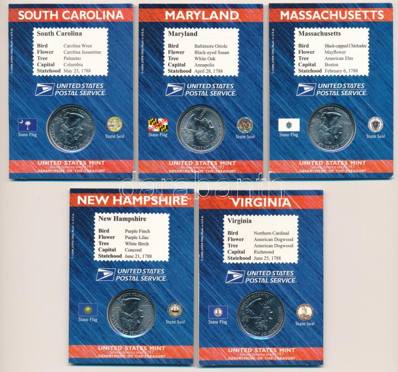 Amerikai Egyesült Államok 2000. 1/4$ Cu-Ni ’50 állam’ (5xklf) bélyeges karton díszlapon T:UNC USA 2000. 1/4 Dollar Cu-Ni ’50 States’ (5xdiff) on cardboard display sheet with stamp C:UNC<a href="https://www.darabanth.com/hu/gyorsarveres/438/kategori