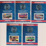 Amerikai Egyesült Államok 2002. 1/4$ Cu-Ni ’50 állam’ (5xklf) bélyeges karton díszlapon T:UNC USA 2002. 1/4 Dollar Cu-Ni ’50 States’ (5xdiff) on cardboard display sheet with stamp C:UNC<a href="https://www.darabanth.com/hu/gyorsarveres/440/kategori