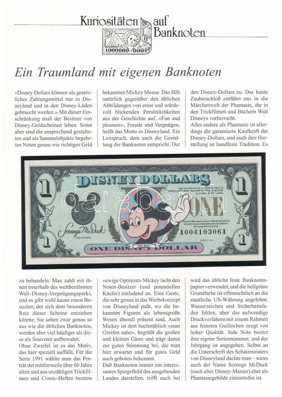 Amerikai Egyesült Államok / Disneyland 1991. 1 Disney Dollar német nyelvű leírással T:I USA / Disneyland 1991. 1 Disney Dollars with german description C:UNC<a href="https://www.darabanth.com/hu/gyorsarveres/435/kategoriak~Numizmatika/Papir-es-fem-s