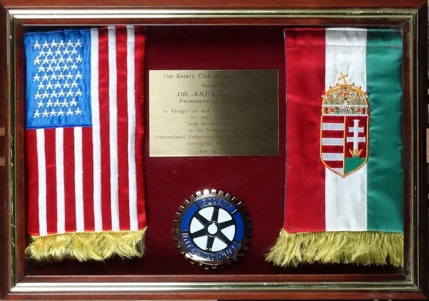 Amerikai és magyar zászlók Göncz Árpád részére, Rotary klub 1991